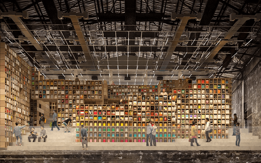 这里将旧戏院的阶梯结构幻化为一座立体的几何迷宫。层层叠叠的高耸书架与交错的木制阶梯,营造出一种《盗梦空间》般的视觉震撼。斑驳的水泥墙柱保留了工业废墟的粗犷美感,与温暖的书灯交织,让读者仿佛迷失在知识的原始丛林中。这不仅是一家书店,更是一场关于建筑重生与空间探索的感官盛宴。